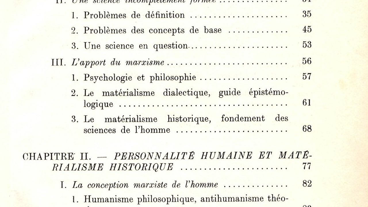 L ’auteur est ainsi conduit à s’expliquer en marxiste sur tous les aspects essentiels de l’anthropologie contemporaine : courants de la recherche en sciences humaines, de la psychanalyse à la sociologie ; attitudes philosophiques non marxistes, de l'existentialisme au structuralisme ; interprétations récentes du marxisme lui-même, de l'humanisme philosophique à l’antihumanisme théorique.