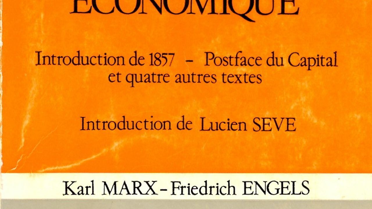 Lucien Sève. Karl Marx, Friedrich Engels. Textes sur la méthode de la science économique. Introduction de 1857, Postface du Capital et quatre autres textes (édition bilingue). Choix des textes et Introduction de Lucien Sève (p. 7-31) ; Éditions sociales, 1974, 238 pages