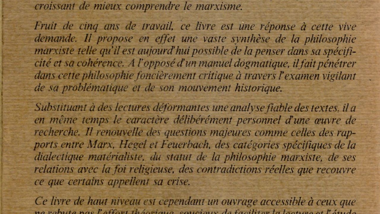 Lucien Sève. Une introduction à la philosophie marxiste. Suivie d'un Vocabulaire philosophique ; Éditions sociales (collection Terrains), 1980, 716 pages 1