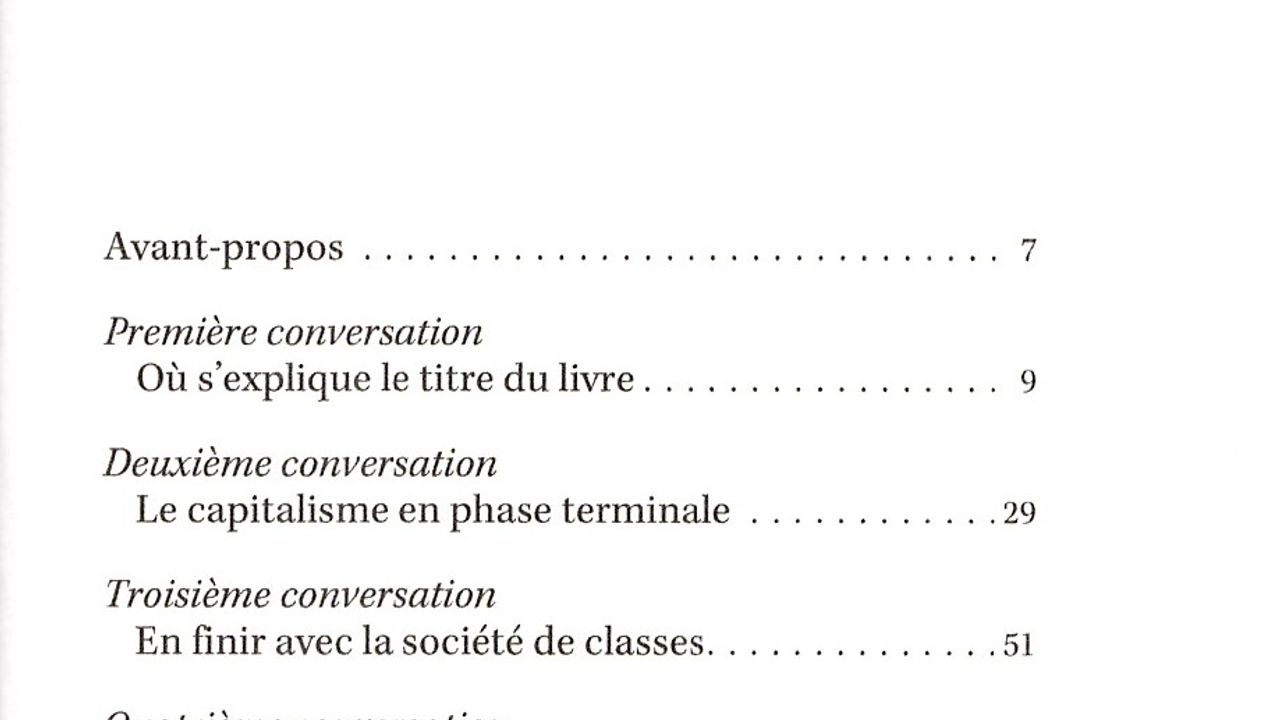 Ce livre d'entretiens, au fil de sept conversations animées entre fils et père, appelle à retrouver l'audace révolutionnaire, mais de façon tout autre qu'au siècle dernier. Il ne s'agit plus de la révolution d'une classe mais du peuple producteur entier en sa diversité, prenant ses affaires en main. Il ne doit plus être question d'insurrection violente mais, moyennant d'intenses luttes d'idées et d'initiatives pratiques, d'une conquête pacifique de l'hégémonie en faveur de réformes révolutionnaires changeant d'emblée la vie du grand nombre. Et le livre appelle non pas à la transformation par en haut sous pilotage autoritaire d'un parti vertical, mais à une appropriation commune, fondée sur l'implication de tous les individus s'auto-organisant horizontalement en inventant les règles d'une société sans classes et hautement développée.
